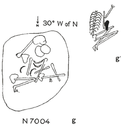 | 7004 | B | 12-4901 | Adult | Male | A. Lythgoe | Too disturbed | Completely disturbed | Not present. | Not present. | In situ | None found | None found | Later than A, contemporary with C. |