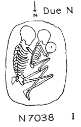 | 7038 | A | 12-4917 | Adult | Unknown/unrecorded | Lythgoe/n.s. | Flexed, left side | Intact | Type III | Type III | In situ | None found | None found | Lying over partly on stomach. Sex not positive. |