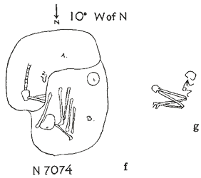 | 7074 | C | Sub-adult | Unknown/unrecorded | Lythgoe/n.s. | Flexed, left side | Intact | Type I | Type I | None found | None found | None found | Contemporary with A; these are the original burials. | |