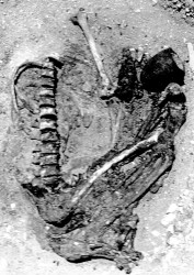 | 7083 | A | Old adult | Male | P. Podzorski | Flexed, left side | Upper body | Not present. | Type I | In situ | None found | In situ | Alabaster pendants. Lipping on margins of vertebrae. | |