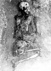 | 7616 | A | 12-5033 | Adult | Male | P. Podzorski | Flexed, left side | Arms/legs | Not present. | Type I | None found | None found | Disturbed | Horn pendant. Sex by innominate; age by teeth/sutures. |